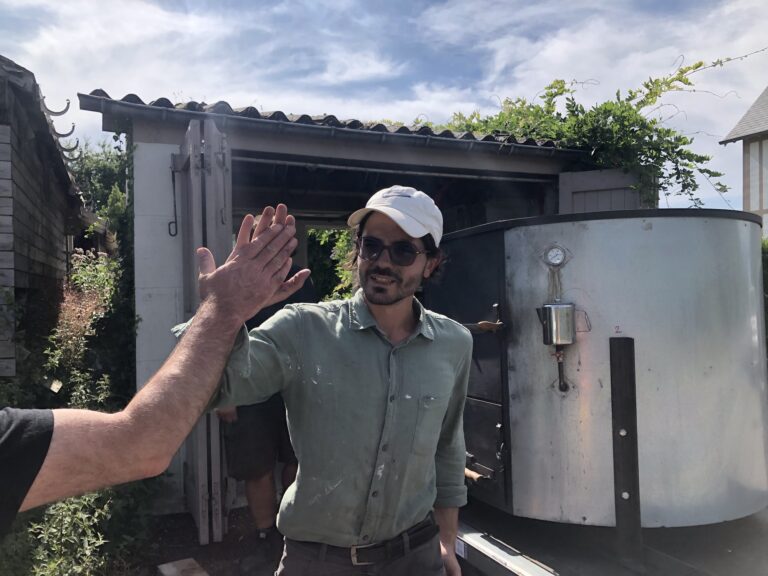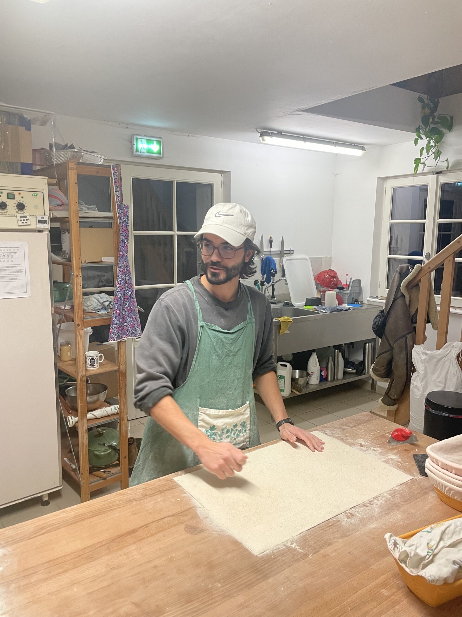 Après des études littéraires de trois ans, j’ai voulu découvrir et expérimenter d’autres manières d’apprendre. C’est à l’occasion du premier confinement covid que j’ai commencé à pétrir et façonner mes premiers pains, dans ma cuisine. Une fois libre, je suis parti voyager à pied pendant deux mois avec Emma, ma compagne, et Una, une ânesse périgourdine. Lors de cette marche, au hasard, plutôt heureux, de la route et des rencontres, j’ai découvert le monde agricole et notamment celui de la boulangerie-paysanne. Après ce voyage, j’ai décidé de me plonger entièrement dans l’apprentissage de ce métier. Ainsi, j’ai suivi une formation BPREA spécialité Paysan-boulanger en apprentissage pendant 2 ans et j’ai passé le CAP boulanger en candidat libre. Aujourd’hui, je souhaite transmettre un peu de tout ce que j’ai appris au cours de ces différentes expériences, un peu de mon goût pour les bonnes choses et surtout un peu de joie à travers la fabrication d’un pain-paysan qui fait du bien au ventre et à la terre. J’ai voulu penser la Pâtambul’ comme un espace de liberté, de rencontres et d’apprentissages.
